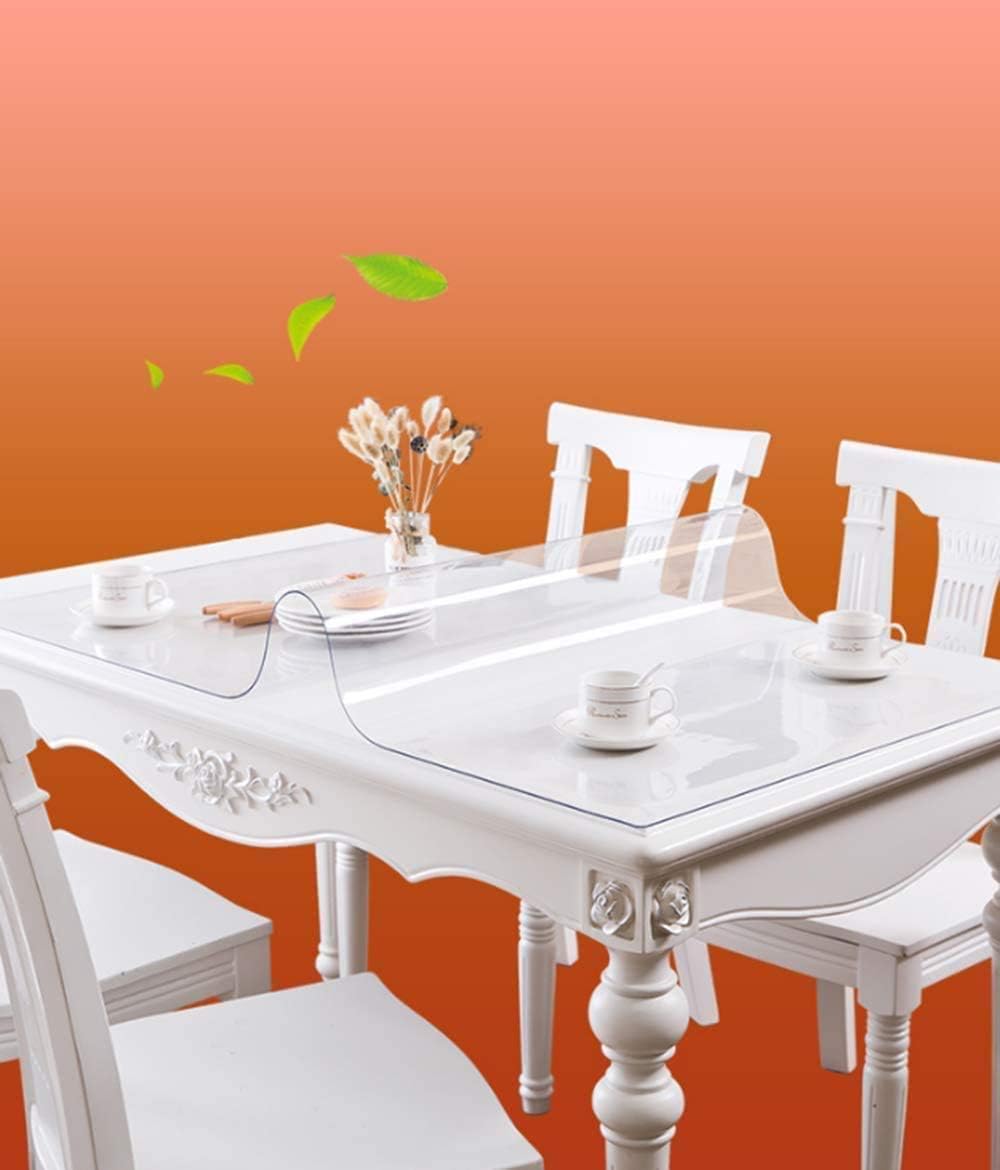 Premium crystal clear vinyl tablecloth serves as a fine table top protector, helping you protect your table from scratches and beverage spills.